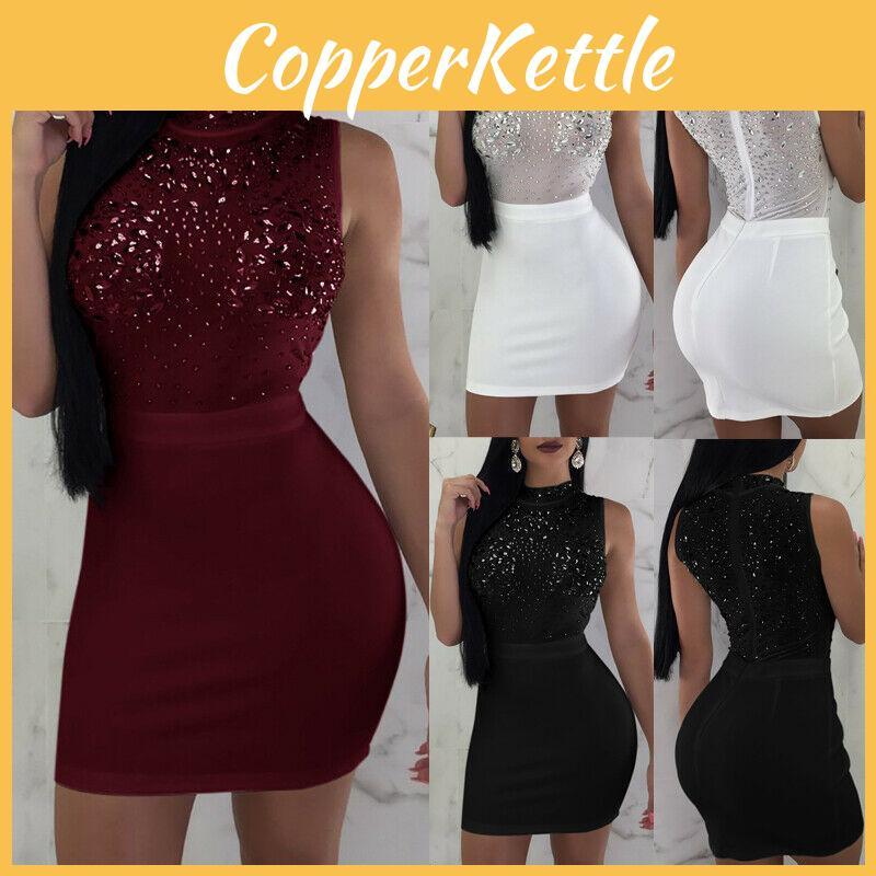 Elegant Sexy Shiny Women's Bodycon Dress With Diamond O Neck For Evening Embroidery