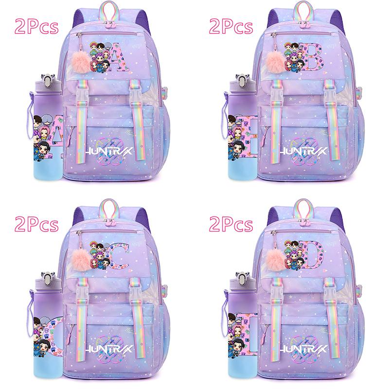 2Pcs/set New K-pop Printed Backpack 750Ml Water Bottler Large Capacity Travel Bag for Teenager Girl Boy Waterproof Bookbag Kid Gift Rucksak