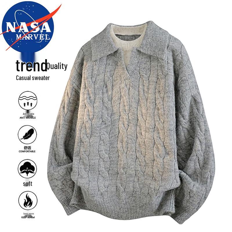NASA MARVEL Men's Cable Knit Lapel Sweater