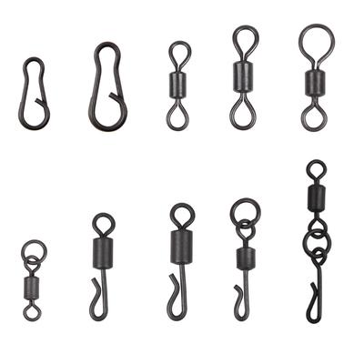 30Pcs Carp Fishing Rolling Swivels Matte Black Long Body Quick Change Swivel With Ring Snap Connector Carp Fishing Accessories