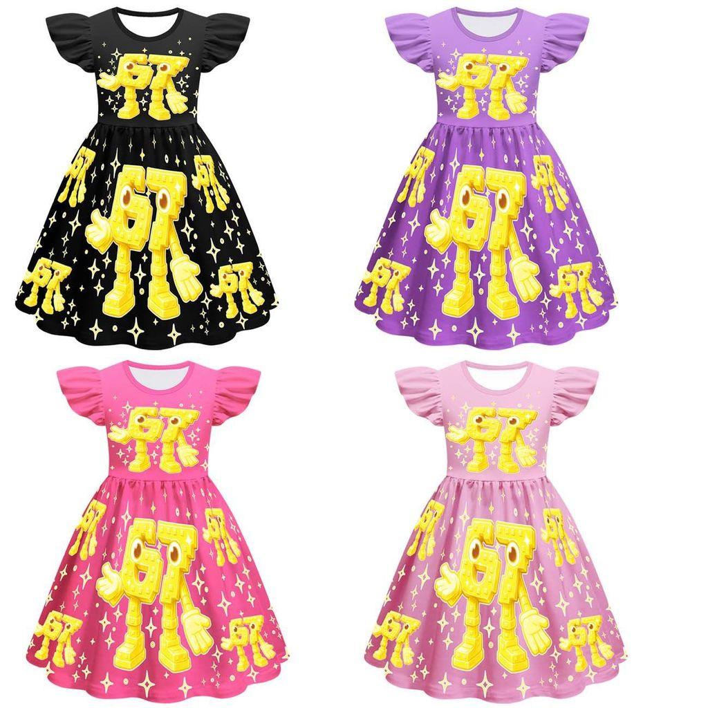 82833 Kids Girls Steal a Brainrot 67 Six Seven Print Ruffle Sleeveless Princess Dress