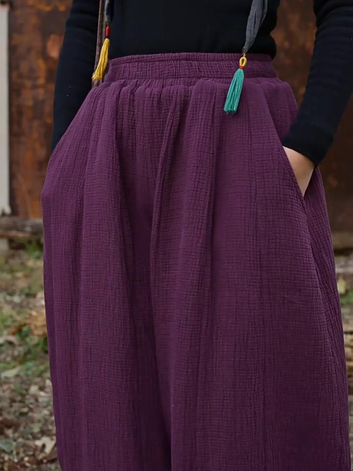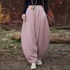 Johnature Women Vintage Winter Pants Warm Solid Color Elastic Waist Trousers Loose Pockets Female Pants
