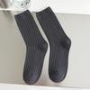 Women's Japanese Style Mid-Calf Double-Needle Combed Cotton Socks - Autumn/Winter Breathable Versatile Solid Color