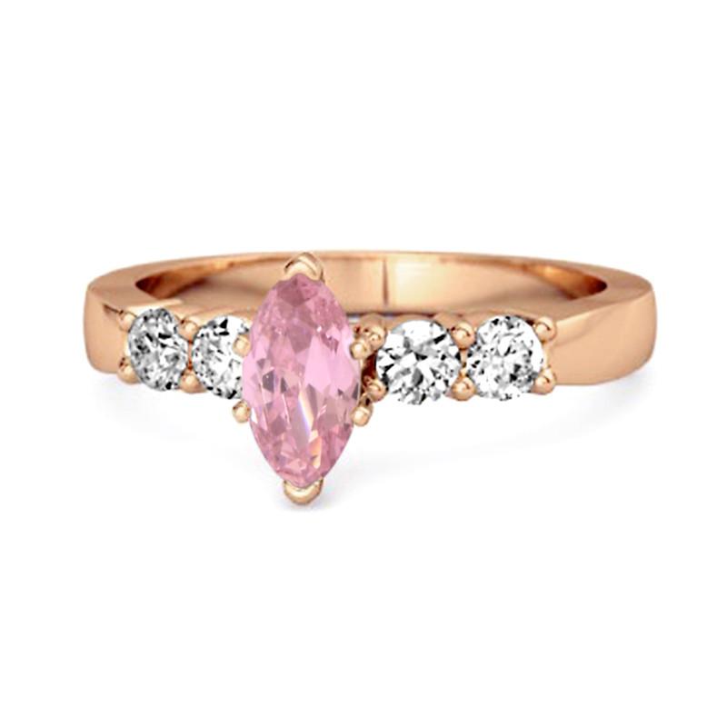 Sterling silver ring with 6x3 mm marquise pink CZ and accent stones, 0.38 ct total. Feminine and romantic five-stone ring for gifting or everyday wear.