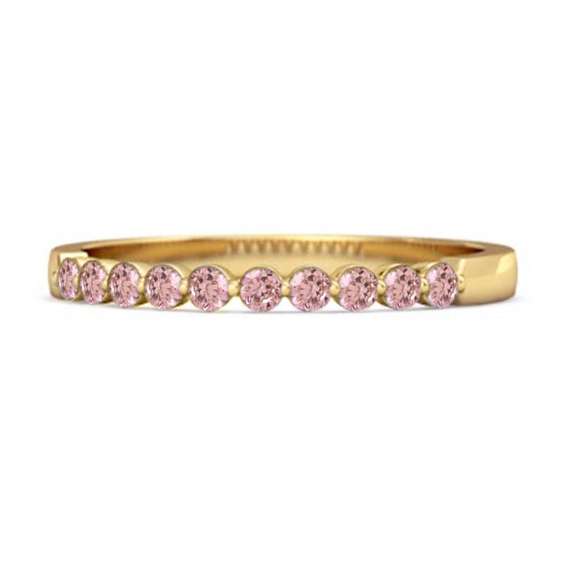 925 sterling silver half eternity ring with 2.5MM round pink CZ stones totaling 0.60 carats. A charming and colorful stacking band.