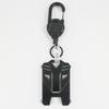 Black Leather Retractable Badge Reel Keychain with Spring Buckle for Backpacks