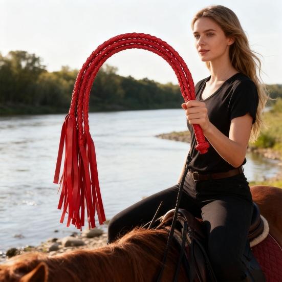 The premium two-tone design of red and black exudes luxury and boldness, making it a valuable centerpiece in any tack room. Its professional 8-tail braided cords ensure precise command delivery for training and performance.