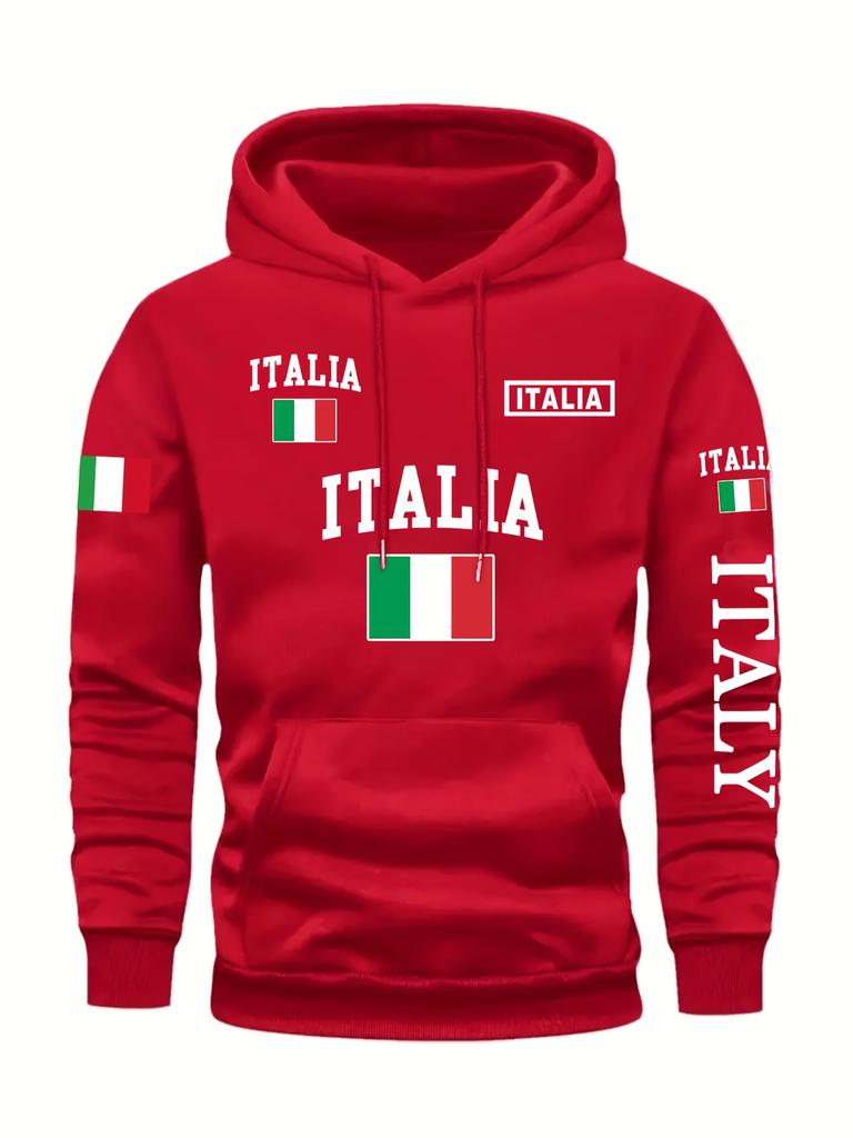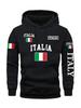 Men's Stylish Graphic Hoodie Black Casual Pullover Front Pocket Comfortable Polyester Blend Machine Washable Italy Sweatshirt