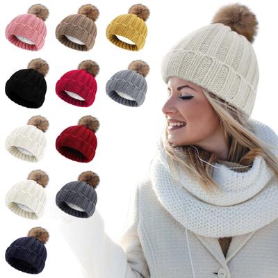 Women Hats Caps Winter Warm Furry Ball Beanies Skullies Pompommed Knitted Crocheted Accessories