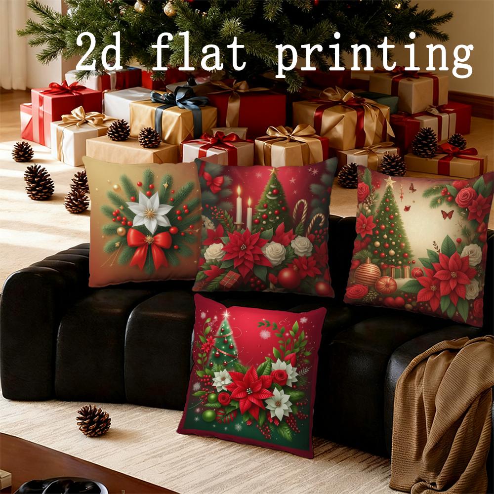 Home Decor Christmas-themed Floral and Tree Pillow Covers Pattern Cushion Cover Suitable for Sofa Bedroom Car Pillow Cover