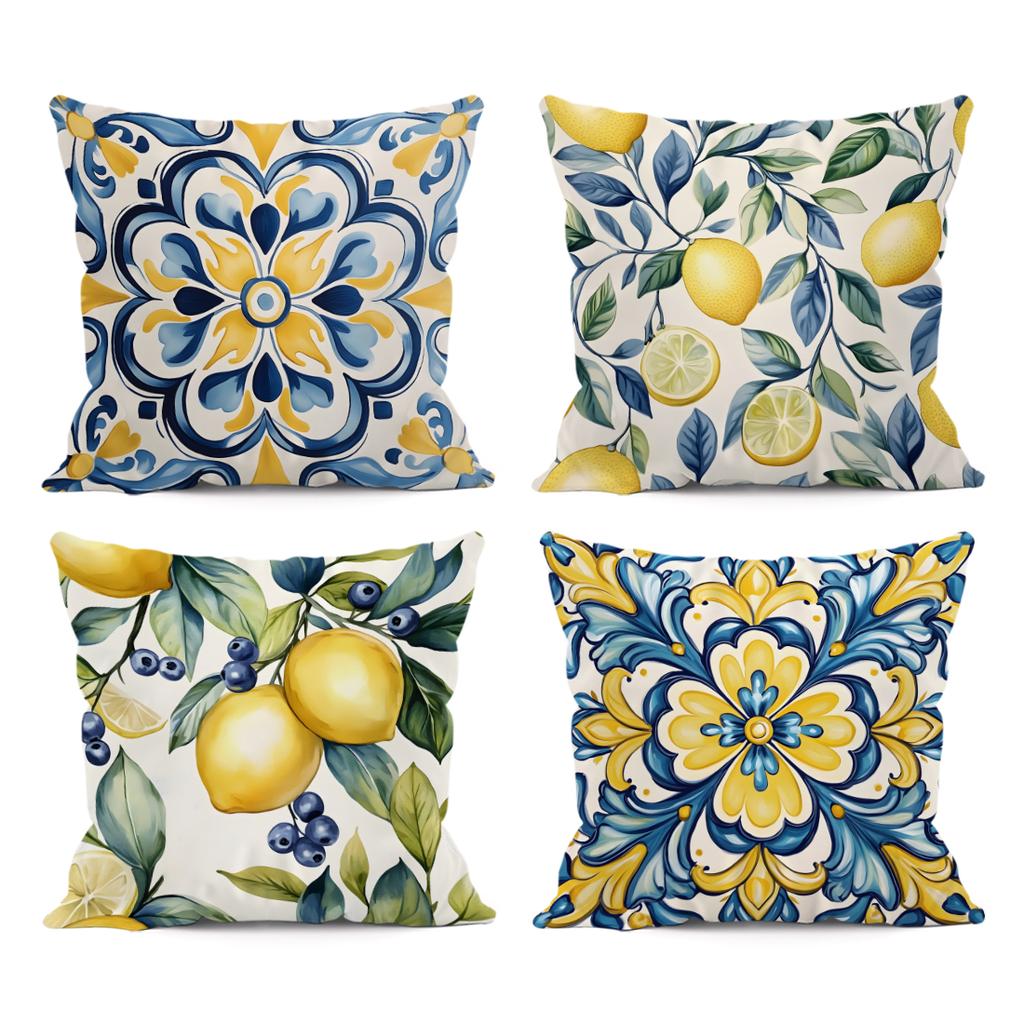 Home Decor Floral & Lemon Patterned Throw Pillow Covers Pattern Cushion Cover Suitable for Sofa Bedroom Car Pillow Cover