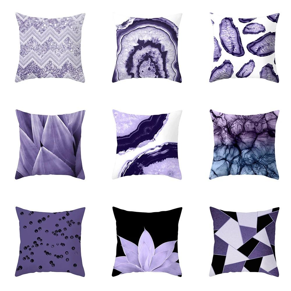 Square Throw Pillow Geometric Purple Marble Print Pattern Cushion Cover Home Living Room Sofa Decoration