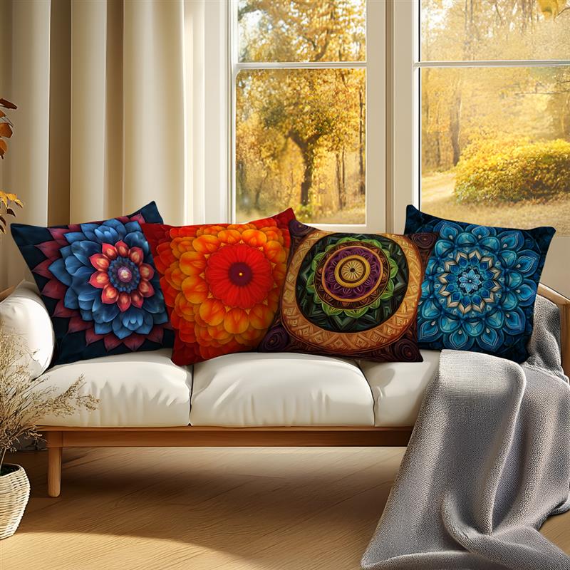 Home Decor Colorful Mandala Pattern Digital Printed Pillow Covers Pattern Cushion Cover Suitable for Sofa Bedroom Car Pillow