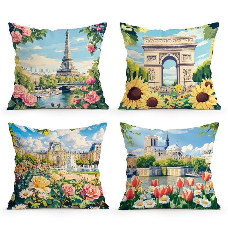 Rustic Style Paris Garden Sofa Cushion Comfortable Pillow Office Cover Living Room Home Decor Modern Printed Pillowcase