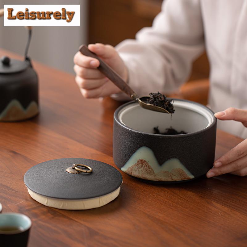 Glazed Painting Colorful Mountains Tea Box Organizer Moisture-proof Japanese Storage Tank Containers Tea Caddy Teaware Ornaments