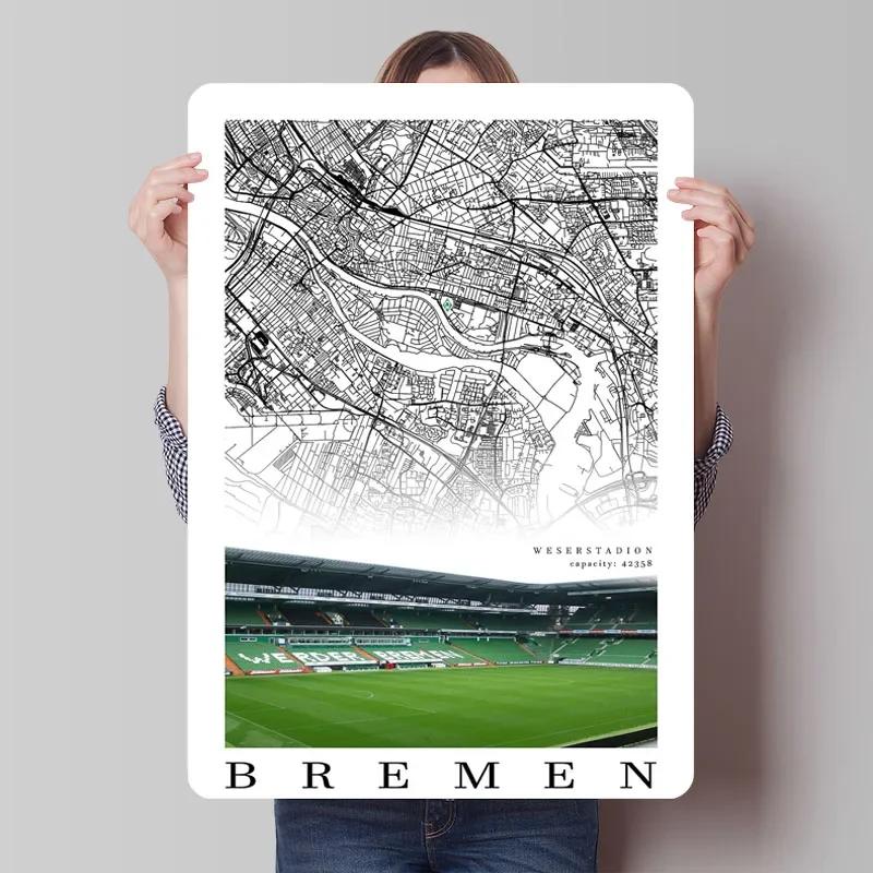 Werder Bremen Stadium Poster Map Metal Sign Things for Room Design Custom Tin Plaques for Wall Art Decoration Vintage Interior