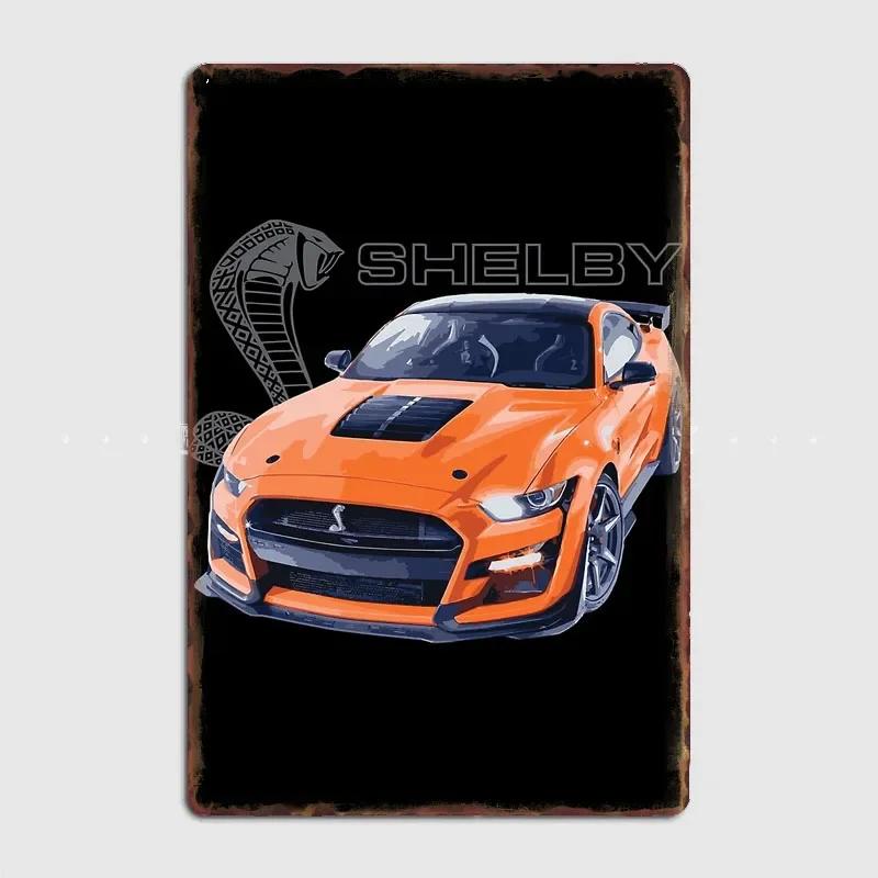 GT500 Mustang Shelby Cobra Twister Orange Poster Drawing Print Wall Art Metal Painting Vintage Garage Tin Sign Art Decor Room