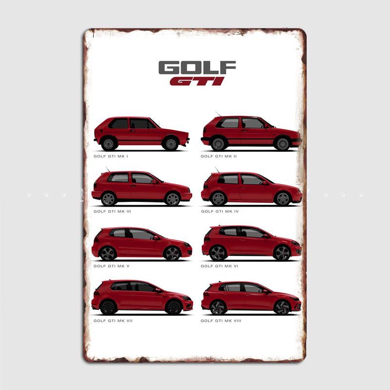 Supercar GTI Generations Red Sports Car Metal Poster Sign Club Wall Art Plaque Tin Sign Room Decoration Home Decor