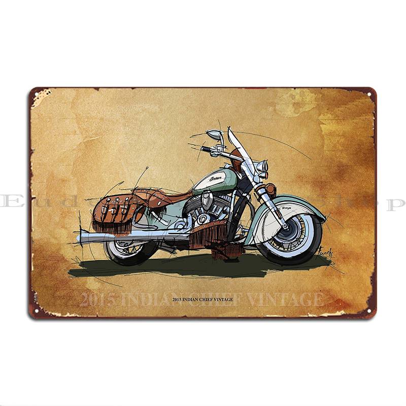 2015 Indian Chief Vintage Original Drawing Vintage Background Metal Signs Garage Wall Decor Classic Printed Wall Plaque