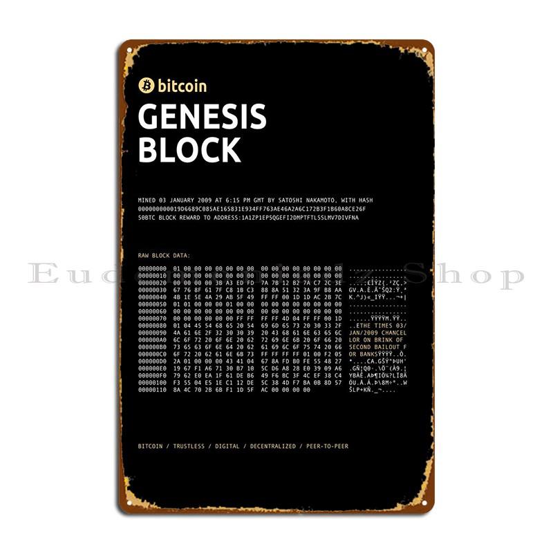 Bitcoin Genesis Block Metal Sign Decoration Decoration Custom Custom Mural Tin Sign Poster