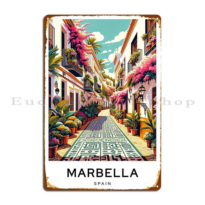 Marbella Spain Digital Art Poster Metal Sign Plates Garage Pub Customized Garage Tin Sign Poster