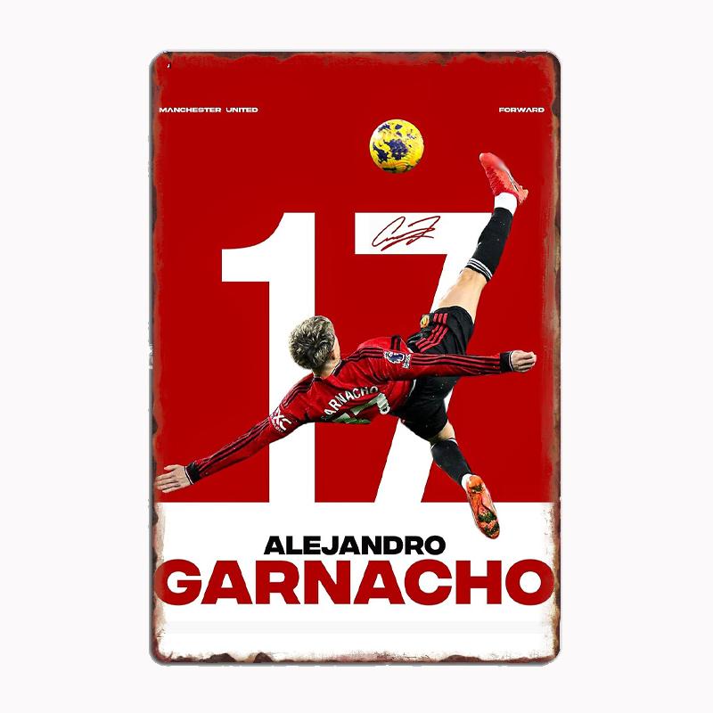 Alejandro Garnacho Minimalist Football Player Retro Metal Poster Sign Club Mural Wall Art Plaque Tin Room Decoration Home Decor