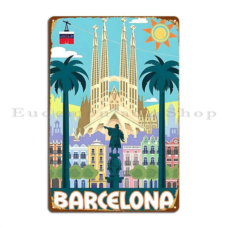 Barcelona Spain Vintage Metal Sign Design Garage Living Room Printing Living Room Tin Sign Poster
