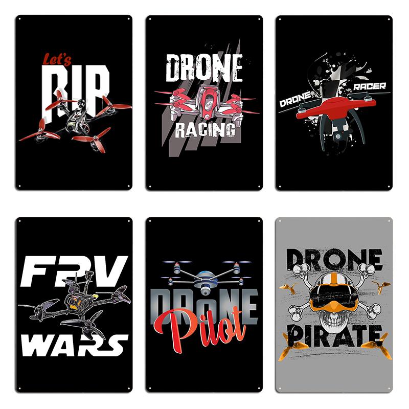 DRONE RACING PILOT UAV UAS QUADCOPTER FPV Metal Plaque Wall Mural Garage Design Cinema Designer Tin Sign Poster