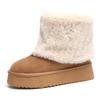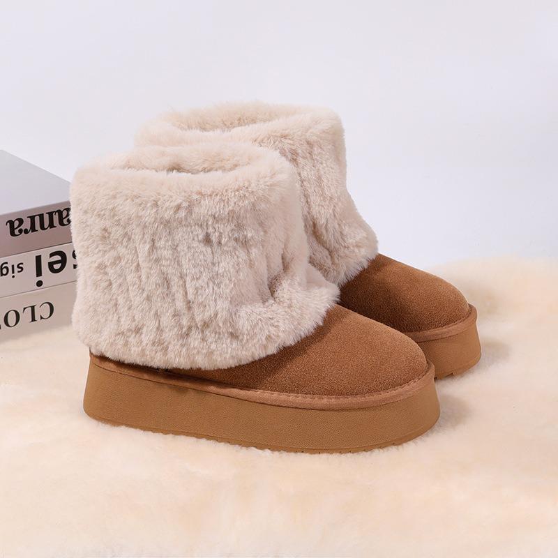 Snow Boots, Women's Fur and Fur Integration, Winter New Fleece Thickened Cotton Boots, Flat Soles, Warm Cotton Shoes, Women's Middle Weight