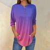 Women's Fashion Casual Three-quarter Sleeve Gradient Printed Round Neck T-shirt Top