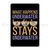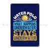 Scuba Diving I Work Well Under Pressure What Happens Stays Underwater Water Polo Sport Humor Metal Plaque Bar Tin Sign Poster