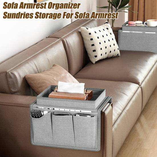 Introducing the sofa armrest organizer, a versatile storage solution for your living space. This double-sided organizer offers ample storage on both the outside and inside, making it convenient for keeping various items close at hand. When not in use, simply fold it for easy storage, saving valuable space in your home. With increased capacity, this sofa armrest storage bag allows you to neatly store a variety of sundries while keeping them visible and easily accessible. No installation is required just hang it over your sofa armrest and start using it right away. The anti-rocking design ensures stability, preventing spills and offering practicality.