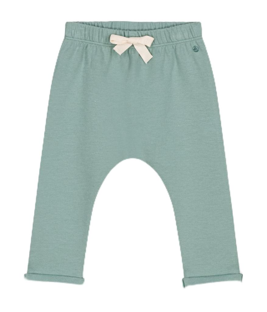 These double-breasted jersey pants are available in two colors: the brand's navy and the seasonal light green. They are made from a sturdy, flat-knit material that won't lose its shape. They feature a rounded silhouette and rolled-up hems that are perfect for babies. A casual yet sophisticated look, they also make a great gift.