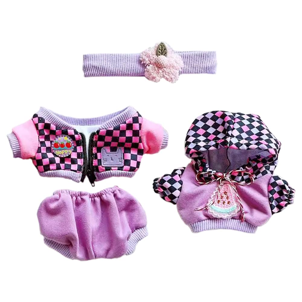 Niannyyhouse 20cm Plush Doll Clothes, Headband, Hoodie, Coat, Pants, Cotton Doll, Dress-Up (Purple)