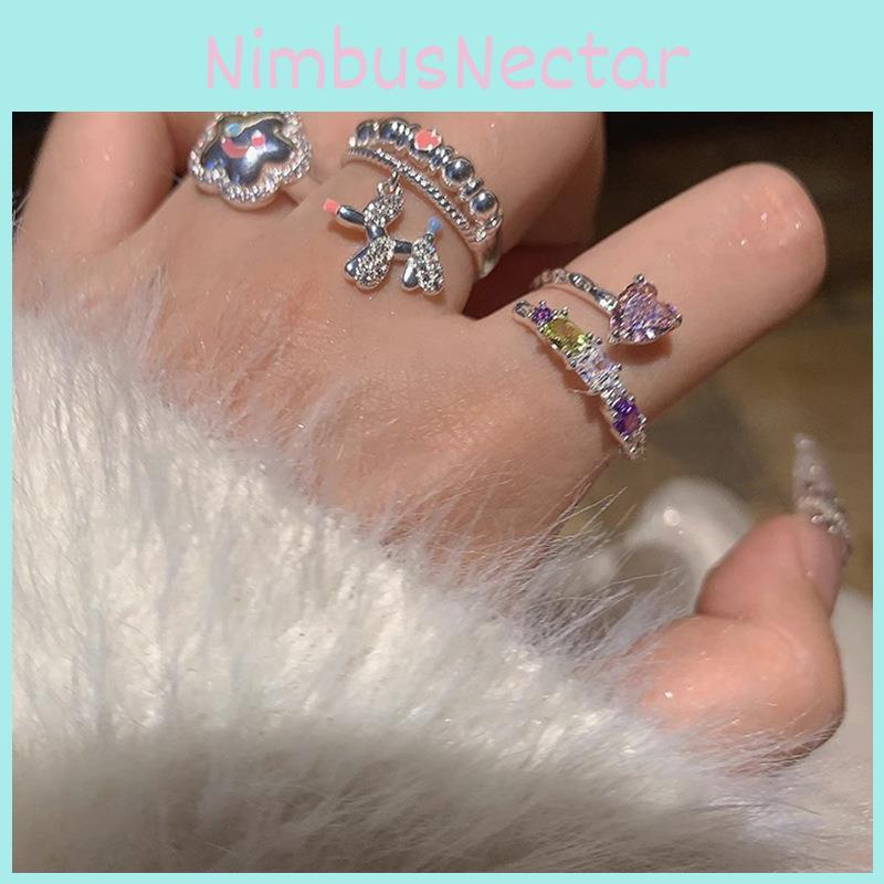 Stylish Geometric Dopamine Ring With Heart And Star Design For Women Adjustable Copper Fashion Jewelry
