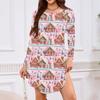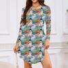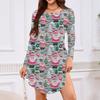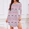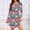 Women's Long-sleeved T-shirt Dress With Round Neck, Knee-length, Loose Fit, Casual And Pockets