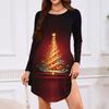 Women's Long-sleeved T-shirt Dress With Round Neck, Knee-length, Loose Fit, Casual And Pockets