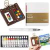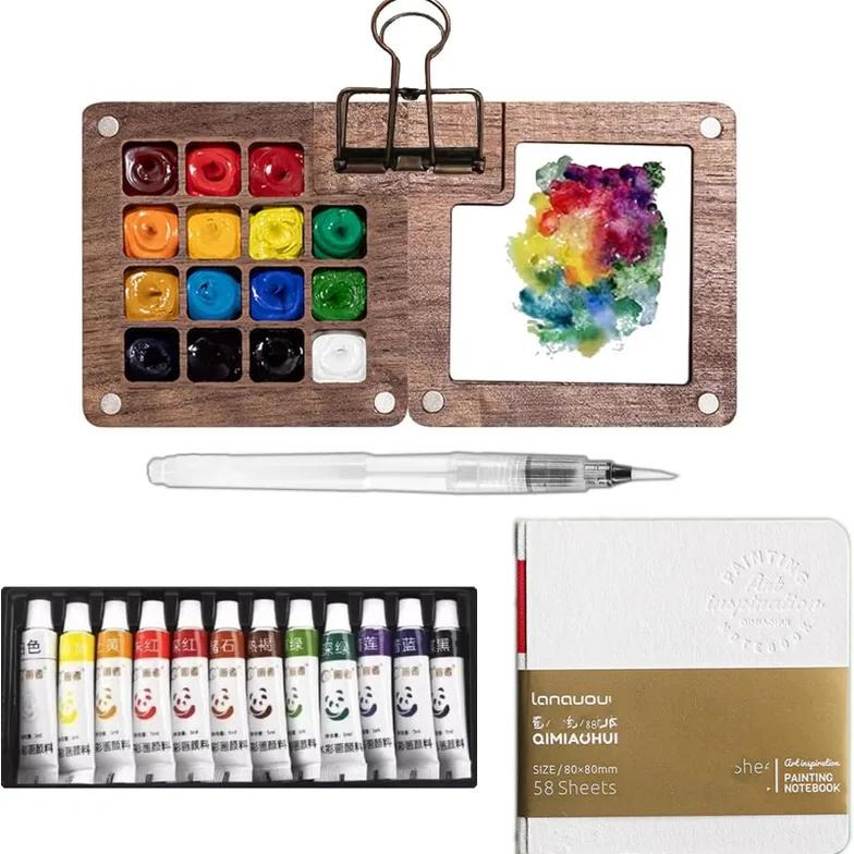 Portable Watercolor Set Travel Palette Sketchbook Brush Pens Binder Clips For Artists Students Painting Tools Drawing Supplies