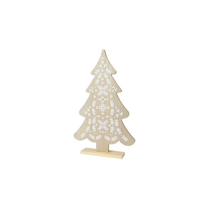 Small Wooden Christmas Tree with White Details, 30x6x48cm. Basics