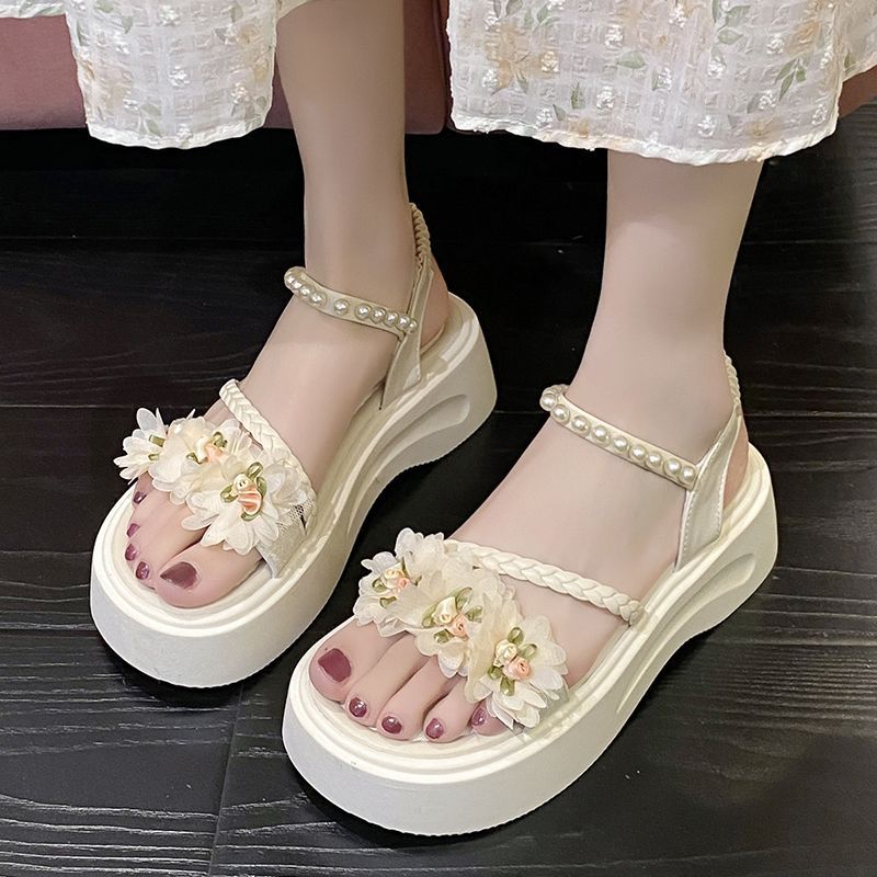 Fashion Sandals for Women Open Toe Pearl Platform Flowers Woman Shoes Anti Slip 2025 Trending Hot Luxury On Offer Summer Offers Footwear