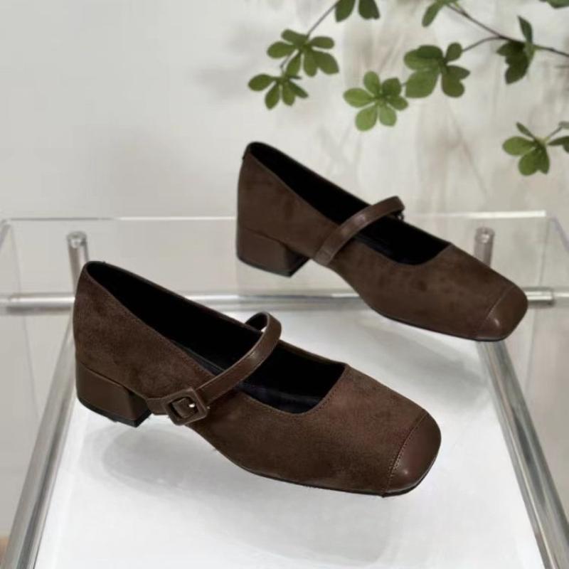 Fashion Retro Mary Jane Shoes 2025 New Square Toe Shallow Mouth Straight Buckle with Thick Heel Patchwork Fashionable Single Shoe