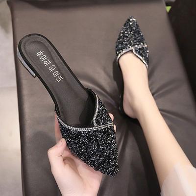 Fashion Pointed Toe Shoes For Women 2024 Rhenstone Crystals Mules Slides Woman Slippers Jewels Low Heel Sandals Summer Small Size Luxury