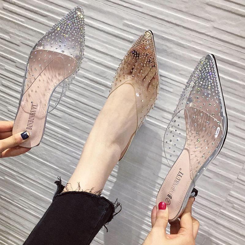 Fashion Netcelebrity Transparent Crystal Peep Toe Slingback Woman Pumps Gold/silver Slip On Slides Clear Thin High Heels Shoes Women2025