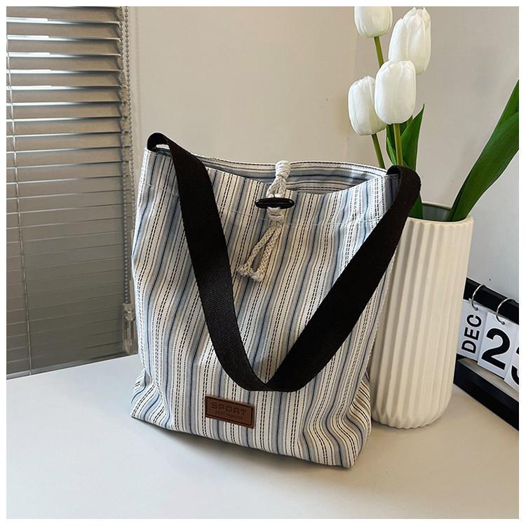 Stylish Design: The white striped pattern and trendy aesthetic make this tote bag a fashionable accessory for any outfit, perfect for those who want to make a style statement while on the go.