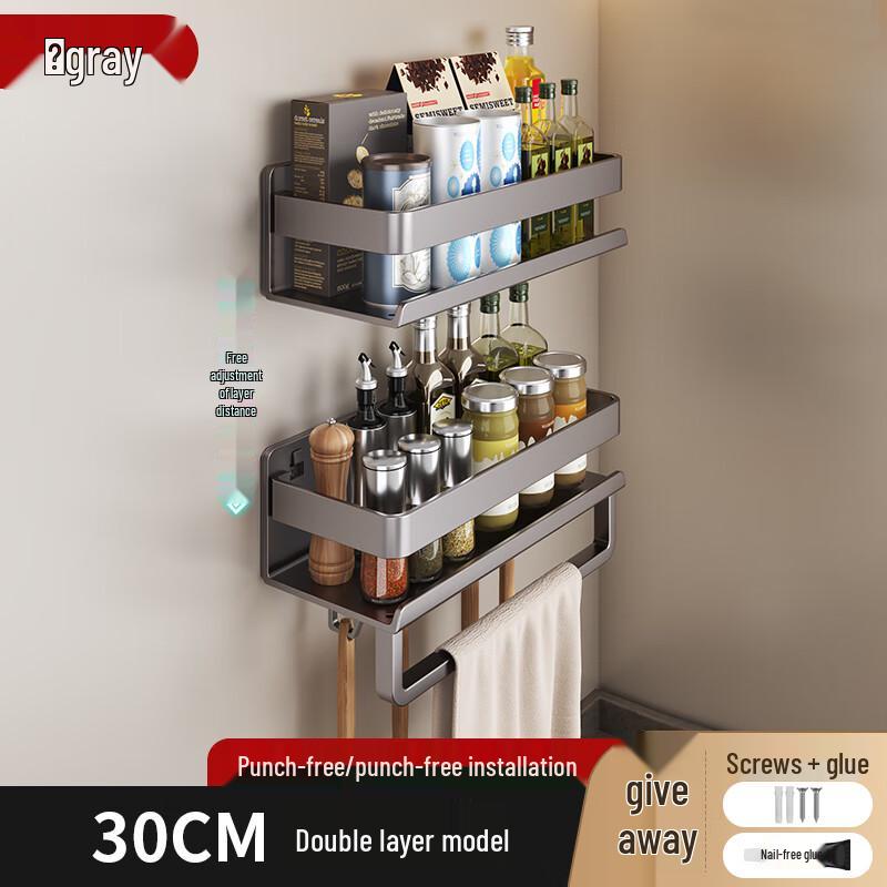Zhaoran Gunmetal Grey Double-Layer Kitchen Spice Rack with Hooks
