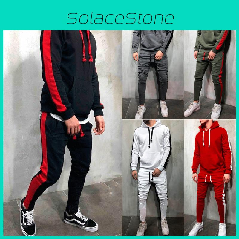 Mens Running Tracksuit Set With Hooded Jacket And Adjustable Waistline Pants For Activewear