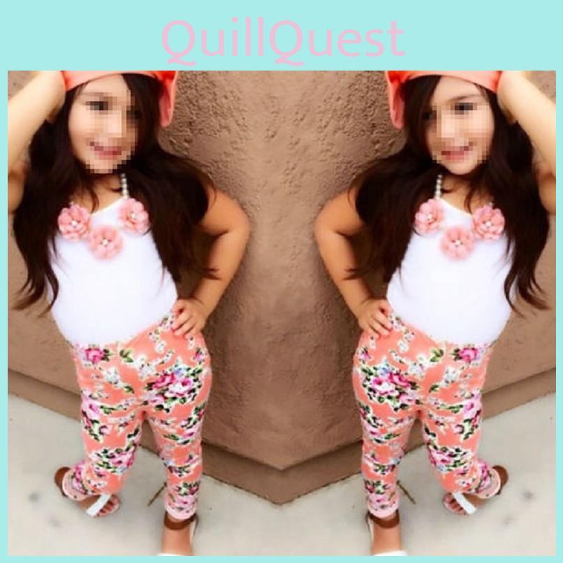 Adorable Toddler Girls Kids Floral Tops Pants Trousers Headband 3pcs Outfits Set Clothes