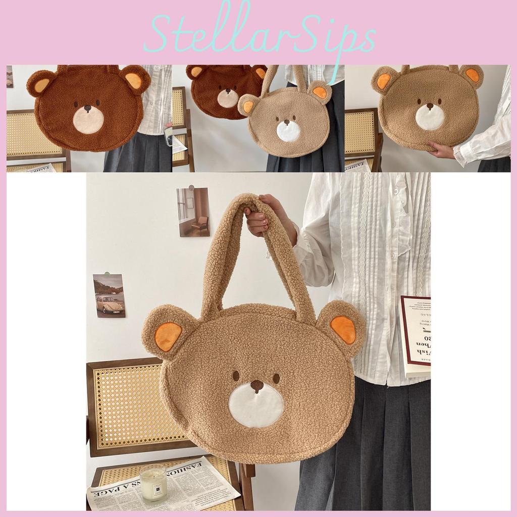 Adorable Large Capacity Plush Bear Shoulder Bag For Women Cartoon Tote Bag