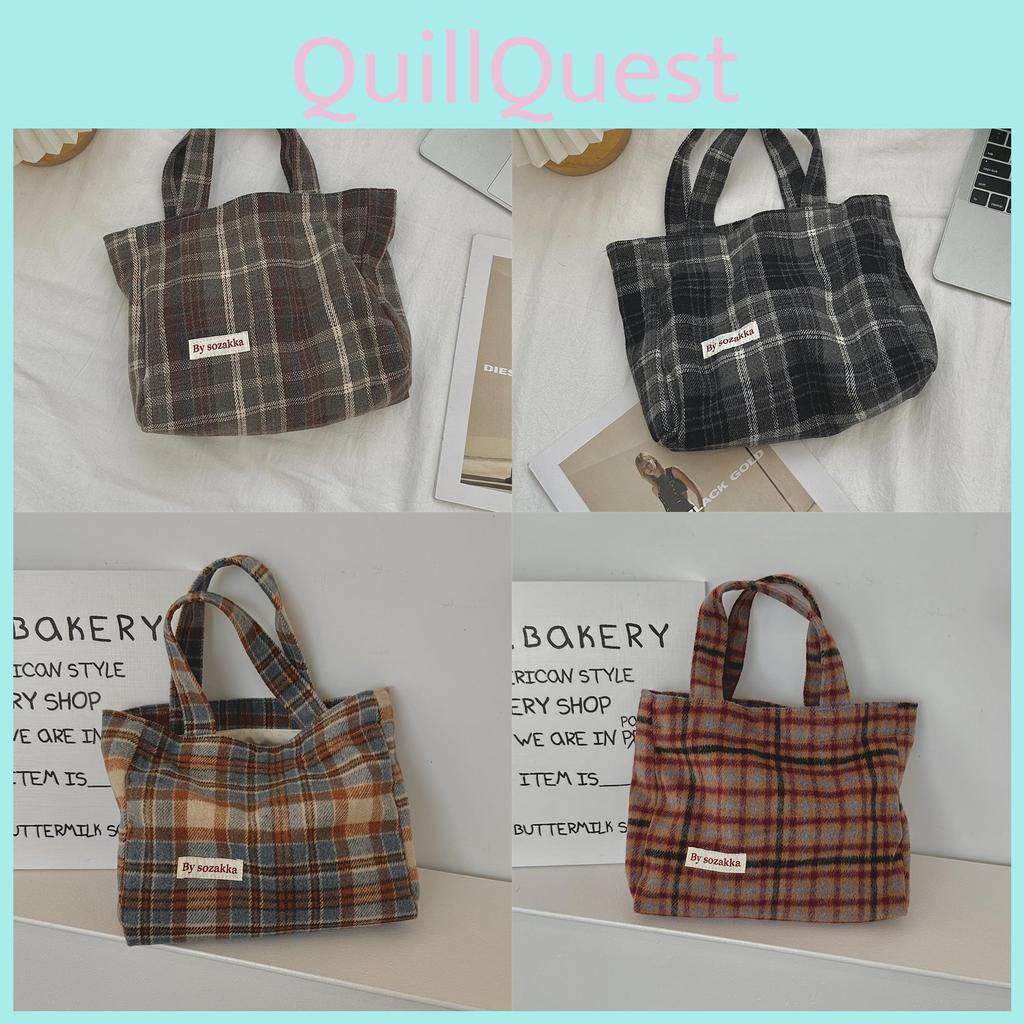Trendy Vintage Plaid Handheld Tote Bag With Soft Fabric And Large Capacity For Essentials
