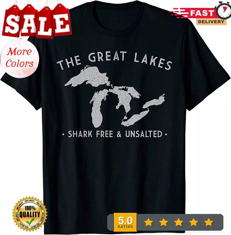 NEW LIMITED Great Lakes Shark Free and Unsalted Funny Vintage T-Shirt